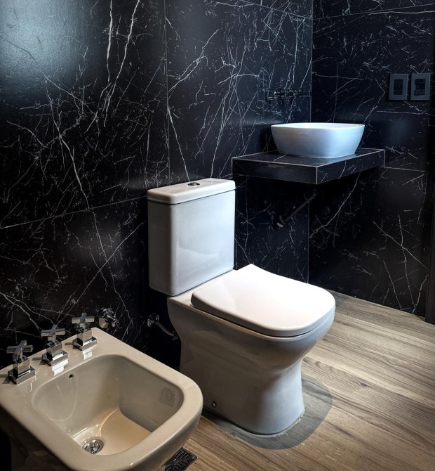 -Galeria semicubierta, con parrilla con frente negro mate e isla con pileta lavatorio.